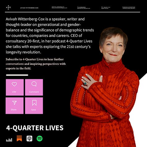 In Season 10 of 4-Quarter Lives, Avivah Wittenberg-Cox talks with the leaders of a growing number of university faculties developing programmes for individuals looking to change direction in their 3rd Quarter of life. We explore the origins and motivations behind these programmes—and how they fit the evolving role of higher education in ageing societies.