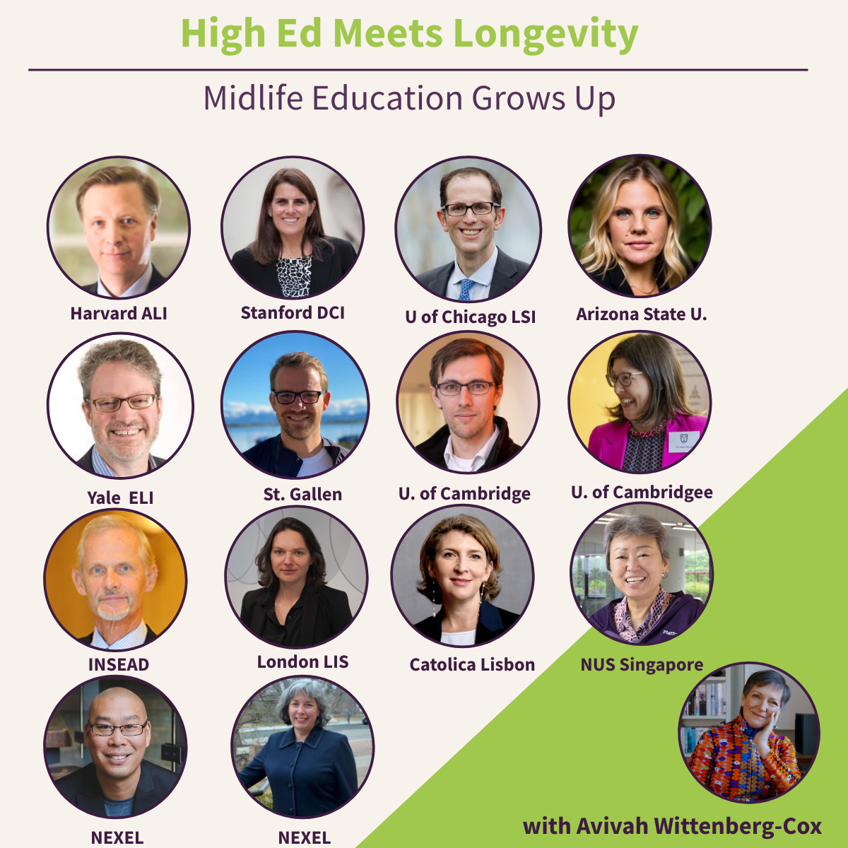 INSEAD offers a programme designed for retiring alumni, harnessing AI to power up new ventures, while ASU anchors its offering in public problem-solving. NEXEL functions as a consortium of all of these schools, helping universities share their learning and encourage and facilitate the building of similar midlife programs. “The future is not one institution,” Simon Chan, co-Chair of NEXEL told me. “Longevity is too big for any single university. The future is a consortium.”
