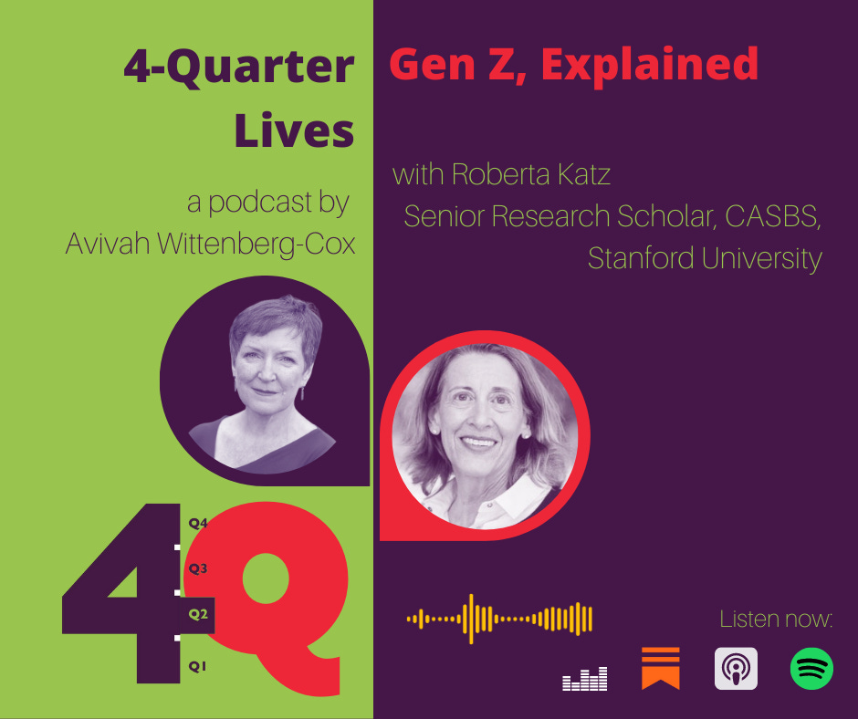 Roberta Katz was involved in helping to establish the Distinguished Careers Institute program at Stanford University and has been a DCI advisor for many years. She is a Senior Research Scholar at Stanford’s Center for Advanced Study in the Behavioral Sciences (CASBS) and co-author of the book Gen Z, Explained: The Art of Living in a Digital Age (University of Chicago Press, 2021). In this podcast she and Avivah Wittenberg-Cox discuss the book, which describes the findings from a multi-year, interdisciplinary study of the behaviors and values of American and British Gen Zers and analyses the historical, technological, and social trends that have influenced them.