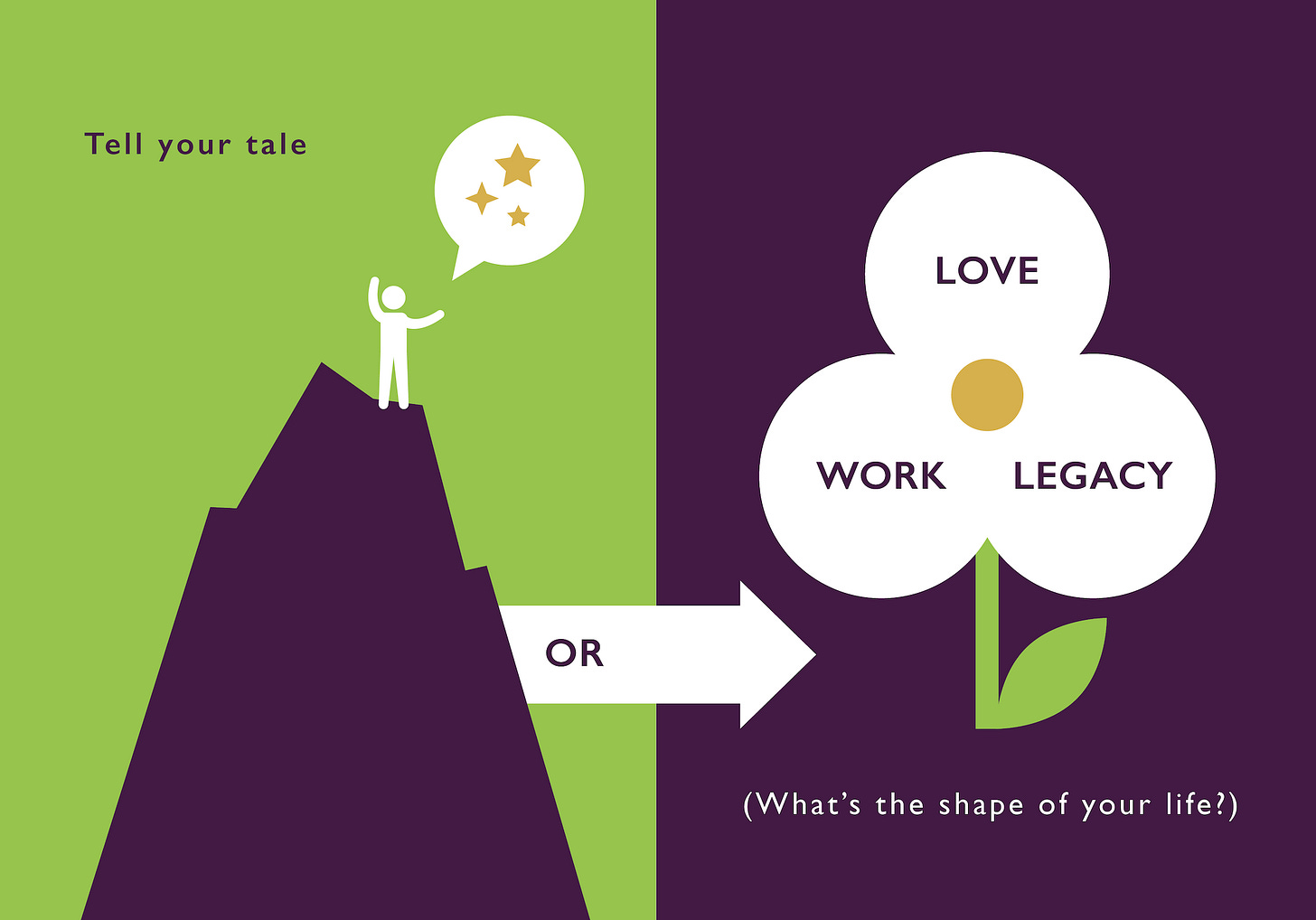 She dismantles structure to examine uncertainty. She slows down. She removes titles. She allows the identity blur to stay blurry. She is not rushing to replace one mission with another. She refuses money as a measure. They remind me of this contrasting image of typical ways men and women frame their life narrative’s, from my Thriving To 100 book: