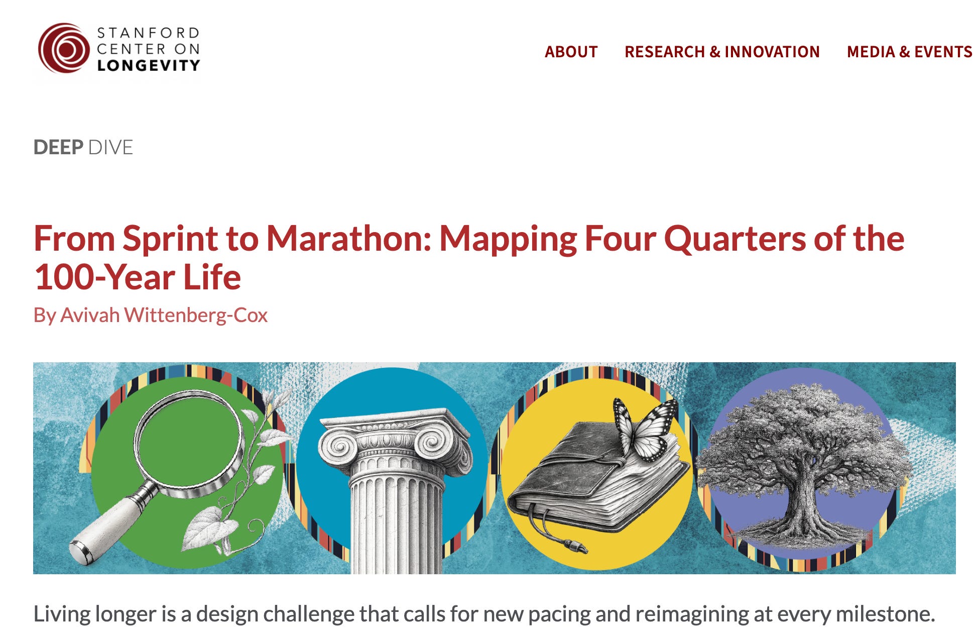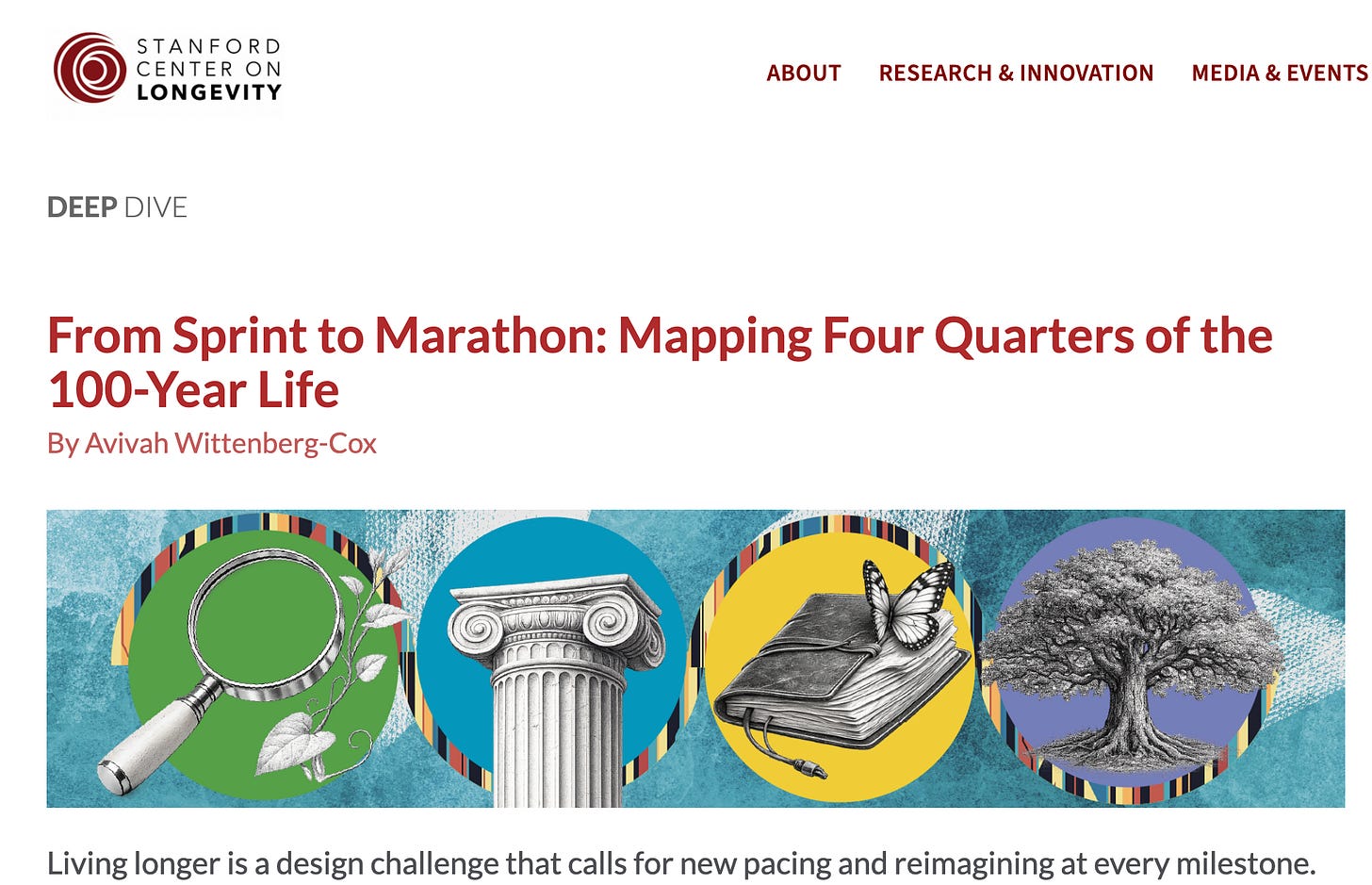 (For a beautifully illustrated reminder of my 4-Quarter model, and the transitions between them, here’s a just-published article in the Stanford Center of Longevity’s new magazine).